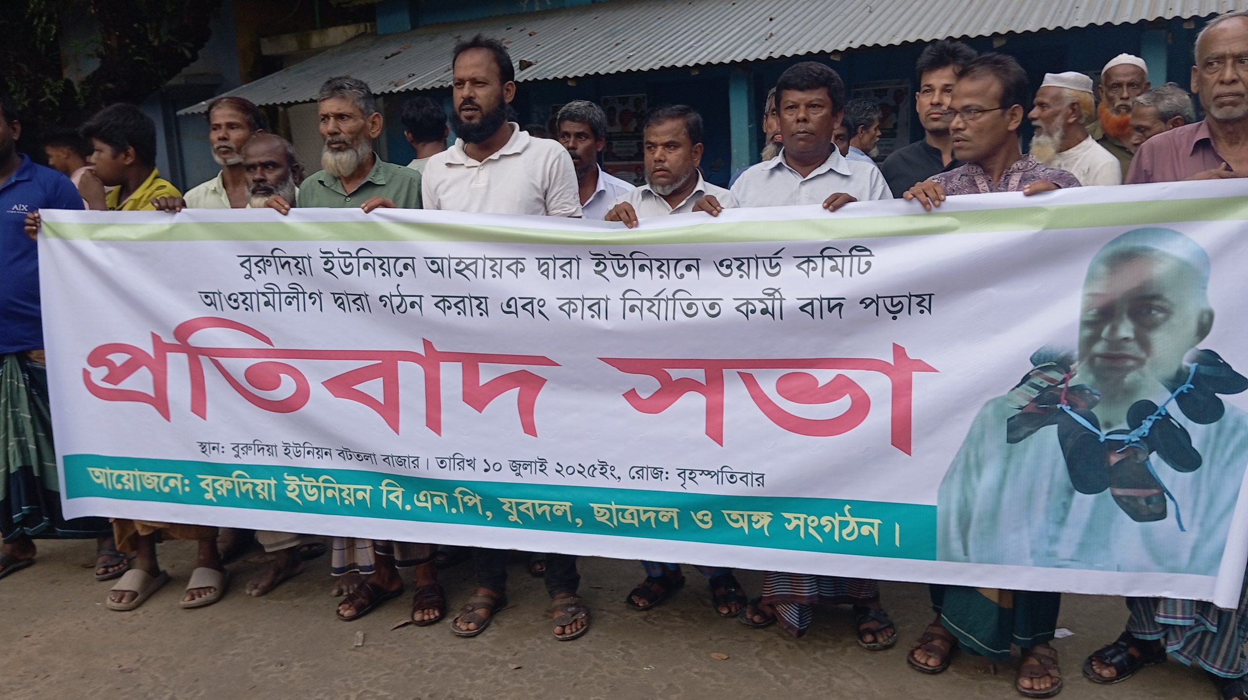 কিশোরগঞ্জ:- কিশোরগঞ্জ জেলার পাকুন্দিয়া উপজেলার বুরুদিয়া ইউনিয়নের ২ নম্বর ওয়ার্ড বিএনপির নতুন কমিটি গঠনে ত্যাগী ও কারা নির্যাতিত নেতাকর্মীদের উপেক্ষা করে ফ্যাসিস্ট ঘরনার দোসরদের অন্তর্ভুক্ত করায় তীব্র ক্ষোভ ও উত্তেজনা দেখা দিয়েছে।এ ঘটনার প্রতিবাদে ১০ জুলাই ২০২৫, বৃহস্পতিবার বিকাল ৪টায় বুরুদিয়া ইউনিয়ন পরিষদ সংলগ্ন মাঠে বুরুদিয়া ইউনিয়ন ছাত্রদল, যুবদল ও বিএনপির অঙ্গ সংগঠনের যৌথ আয়োজনে এক প্রতিবাদ সভা অনুষ্ঠিত হয়।সভায় বক্তারা অভিযোগ করেন, বুরুদিয়া ইউনিয়ন বিএনপির আহ্বায়ক জসীম উদ্দিন (বাচ্চু) নিজের পছন্দের ফ্যাসিস্ট মনোভাবাপন্ন ব্যক্তিদের দিয়ে ওয়ার্ড কমিটি গঠন করেছেন।এতে করে দীর্ঘদিন ধরে দলের জন্য ত্যাগ স্বীকার করা, কারাবরণকারী নেতাকর্মীরা বঞ্চিত হয়েছেন।