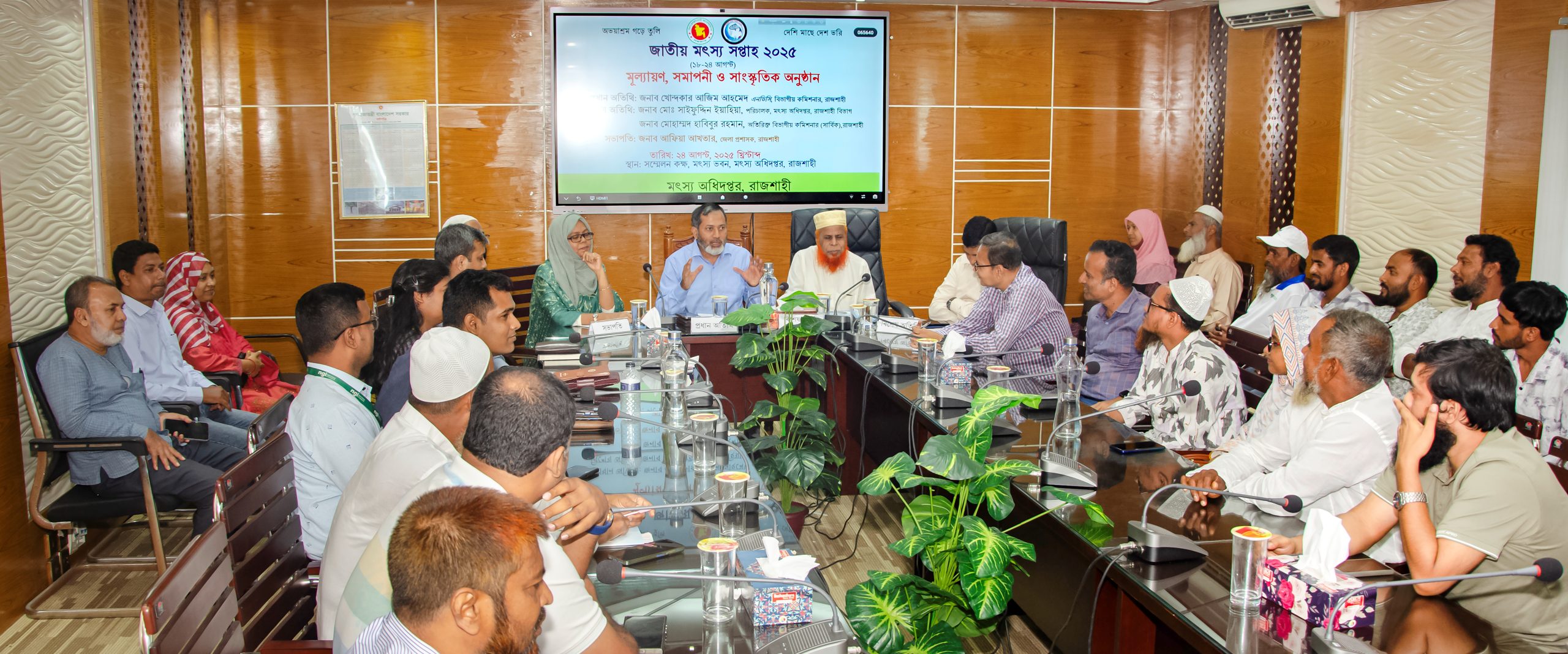 রাজশাহী:- রাজশাহী বিভাগীয় কমিশনার (অতিরিক্ত সচিব) খোন্দকার আজিম আহমেদ এনডিসি বলেছেন, বাণিজ্যিকভাবে মাছ চাষ লাভজনক হলেও আমাদের পরিবেশ, ধর্মীয় ও সাংস্কৃতিক চিন্তার বাইরে যাওয়া যাবে না।আমাদের প্রকৃতি উপযোগী মাছ উৎপাদন করতে হবে।শুধু লাভের জন্য নয়, পরিবেশ সংরক্ষণ করেই মাছ উৎপাদন করতে হবে।জাতীয় মৎস্য সপ্তাহ-২০২৫ উদ্যাপন উপলক্ষ্যে গতকাল রবিবার (২৪ আগস্ট) রাজশাহী বিভাগীয় মৎস্য অধিদপ্তর আয়োজিত মৎস্যভবনের সম্মেলনকক্ষে ‘মূল্যায়ন, সমাপনী ও সাংস্কৃতিক’ অনুষ্ঠানে প্রধান অতিথির বক্তৃতায় তিনি এসব কথা বলেন।
