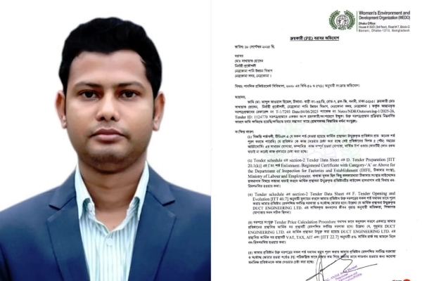 নেত্রকোনা:- আর্থিক লাভ ও অনিয়মের আশ্রয় নিয়ে নিজের পছন্দের প্রতিষ্ঠানকে কাজ দেওয়ার অভিযোগ উঠেছে বাংলাদেশ পানি উন্নয়ন বোর্ড (পাউবো) নেত্রকোনার নির্বাহী প্রকৌশলী মো. সাখাওয়াত হোসেনের বিরুদ্ধে।এমন অভিযোগ করেছেন দরপত্রে অংশ নেওয়া উইমেন ইনভাইরনমেন্ট এন্ড ডেভলপমেন্ট অর্গানাইজেশন (উইডু) প্রতিষ্ঠানের স্বত্বাধিকারী মো. আব্দুল আওয়াল হিমেল।তিনি বেশ কয়েকটি অভিযোগ উত্থাপন করে পাবলিক প্রকিউরমেন্ট বিধিমালা (পিপিআর) ২০০৮ এর ধারা অনুসরণ করে ক্রয়কারী (PE) প্রতিষ্ঠান বরাবরে লিখিত অভিযোগ দাখিল করেন।