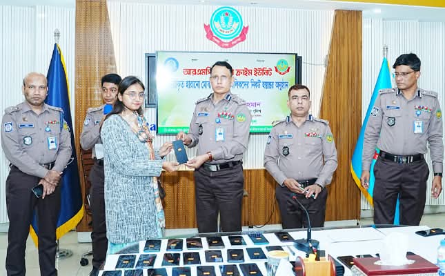 রাজশাহী:- রাজশাহী মেট্রোপলিটন পুলিশের (আরএমপি) সাইবার ক্রাইম ইউনিটের প্রযুক্তিগত সহায়তায় উদ্ধারকৃত হারানো মোবাইল ফোন আজ আনুষ্ঠানিকভাবে প্রকৃত মালিকদের নিকট হস্তান্তর করা হয়েছে।১৪ ডিসেম্বর দুপুর ৩টায় রাজশাহী মেট্রোপলিটন পুলিশ সদর দপ্তরের সভাকক্ষে সাইবার ক্রাইম ইউনিটের উদ্যোগে মোবাইল ফোন হস্তান্তর অনুষ্ঠান অনুষ্ঠিত হয়।অনুষ্ঠানে প্রধান অতিথি হিসেবে উপস্থিত ছিলেন রাজশাহী মেট্রোপলিটন পুলিশের পুলিশ কমিশনার ড. মো: জিল্লুর রহমান।আরএমপি’র সাইবার ক্রাইম ইউনিট আধুনিক প্রযুক্তির সহায়তায় উদ্ধারকৃত মোট ৮৭টি হারানো মোবাইল ফোন শনাক্ত করে।