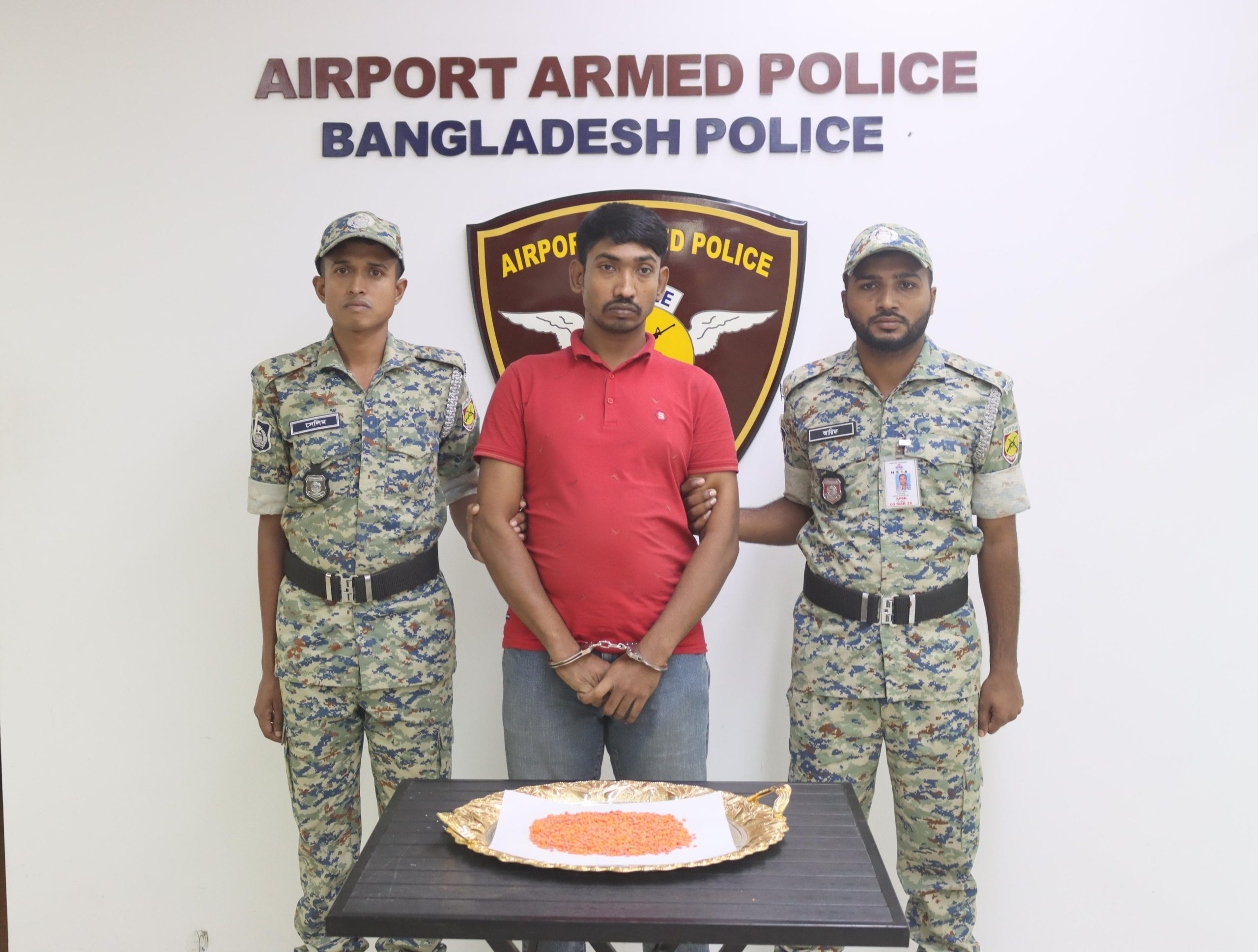 প্রেস রিলিজপেটের ভেতর বিমানযাত্রীর ইয়াবা বহন £ এয়ারপোর্ট এপিবিএন কর্তৃক হশাআবিতে ৩০৮০ পিসইয়াবাসহ আটক ০১ জনহযরত শাহজালাল আন্তর্জাতিক বিমানবন্দর এলাকায় ৩০৮০ পিস কথিত মাদকদ্রব্য ইয়াবা ট্যাবলেটসহ পেশাদারমাদক কারবারি চক্রের ০১ জন সক্রিয় সদস্যকে আটক করে এয়ারপোর্ট আর্মড পুলিশ ব্যাটালিয়ন।এয়ারপোর্ট (১৩) এপিবিএনের একটি বিশেষ টিম হযরত শাহজালাল আন্তর্জাতিক বিমানবন্দর এলাকায় আইনশৃঙ্খলা ডিউটি করাকালীন গত ০৮/১১/২০২৪ খ্রি. ১০.৪৫ ঘটিকায় শাহজালাল আন্তর্জাতিক বিমানবন্দরের আগমনী ক্যানোপি-১ এলাকায় অবস্থানকালে গোপন সংবাদের ভিত্তিতে জানতে পারে যে, বিমানবন্দরের অভ্যন্তরীণ টার্মিনাল এর সামনে নতুন রাডার বিল্ডিং এর পূর্ব পাশে ০১ জন যাত্রী নিজ দেহে অবৈধ মাদকদ্রব্য কথিত ইয়াবা ট্যাবলেট বহন করছে। উক্ত সংবাদের ভিত্তিতে হযরত শাহজালাল আন্তর্জাতিক...